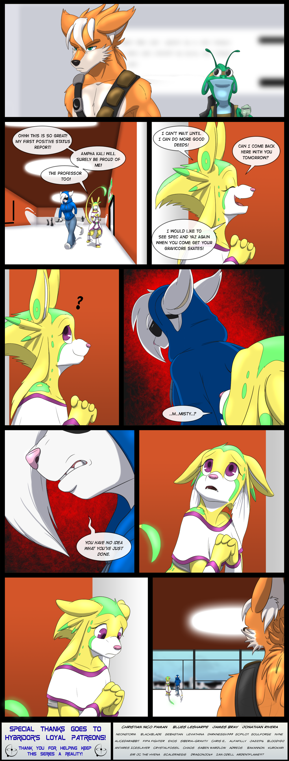 Well , Star's just said she was adopted by the Pridetail family ; not as if she said Misty was around : the hooded person should be Kali . But maybe Misty is afraid of it :http://www.hybridoronline.com/forum.php?p=376 (fourth panel) ; meanwhile , i don't think Dunedin is an "issue guy"
