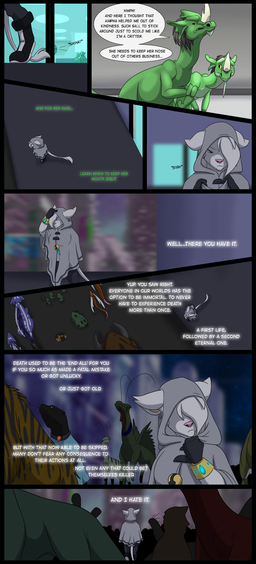 Well , Gorg wasn't really hurry up to become a "cyborg" ; he just wanted to stop the pain . Then , Misty is wrong ; peoples always fears the consequences of their acts : just they've stopped to fear Death ........ But it joins what i said in the previous strip : Misty is afraid for when she'll have to choose ; even ready to say "no" to such fate