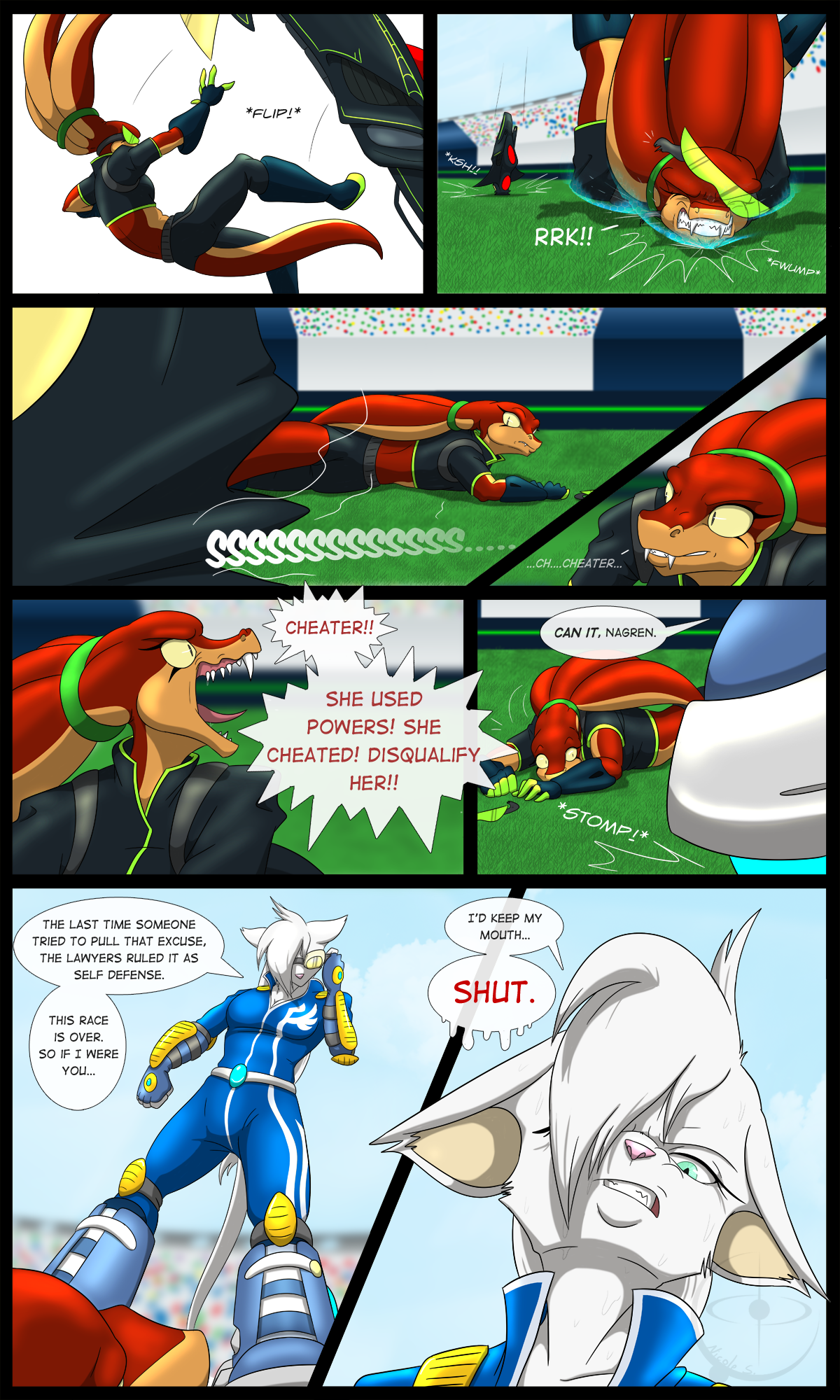 With this page, the actual race is now wrapped up! But with this scene change upcoming, I unfortunately need to delay the next page =( My buffer isn't exactly finished due to RL getting in the way during last weeks comic production. I am aiming for the 25th to be next pages submission, but hopefully I can get it earlier than that if life decides to be kind to me. There will be other arts submitted during this time of no pages though to tie you all over =)